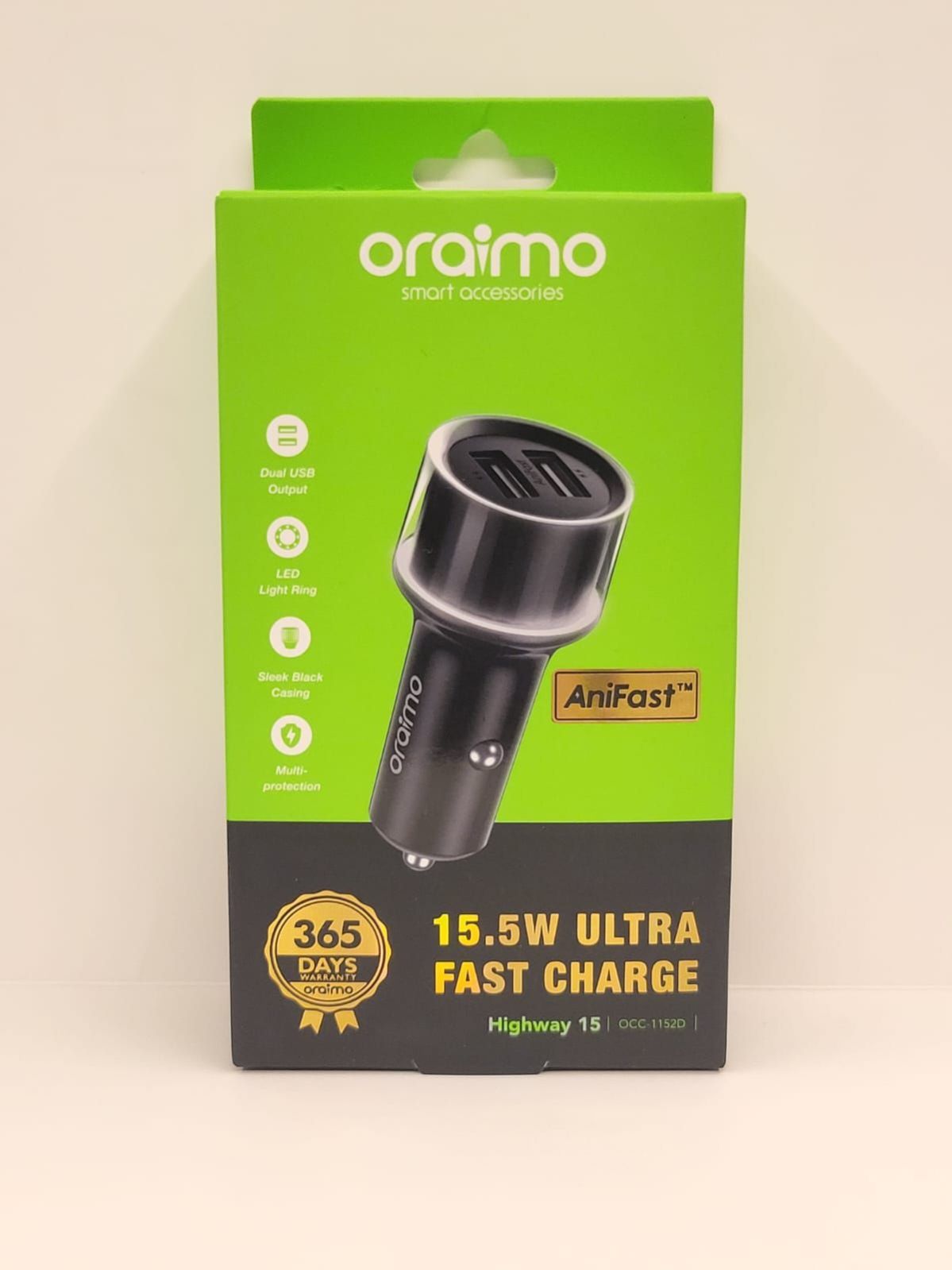 Oraimo 15.5W Ultra Fast Charge is a car charger designed to provide efficient and rapid charging for your devices while on the move.